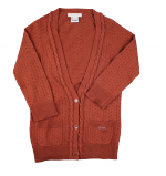 Grandpa cardigan with front cable knit details and two pockets at front.