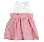 Yard Dye mariner's dress with solid border and pinstripes. Ties at sides to tie in pretty... |