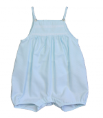 Yarn dye pinstriped romper with contrast pleated front panel.