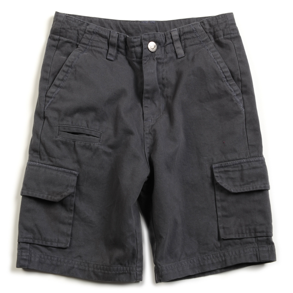 Utility multi pockets shorts with zip fly and adjustable elasticized waistband.