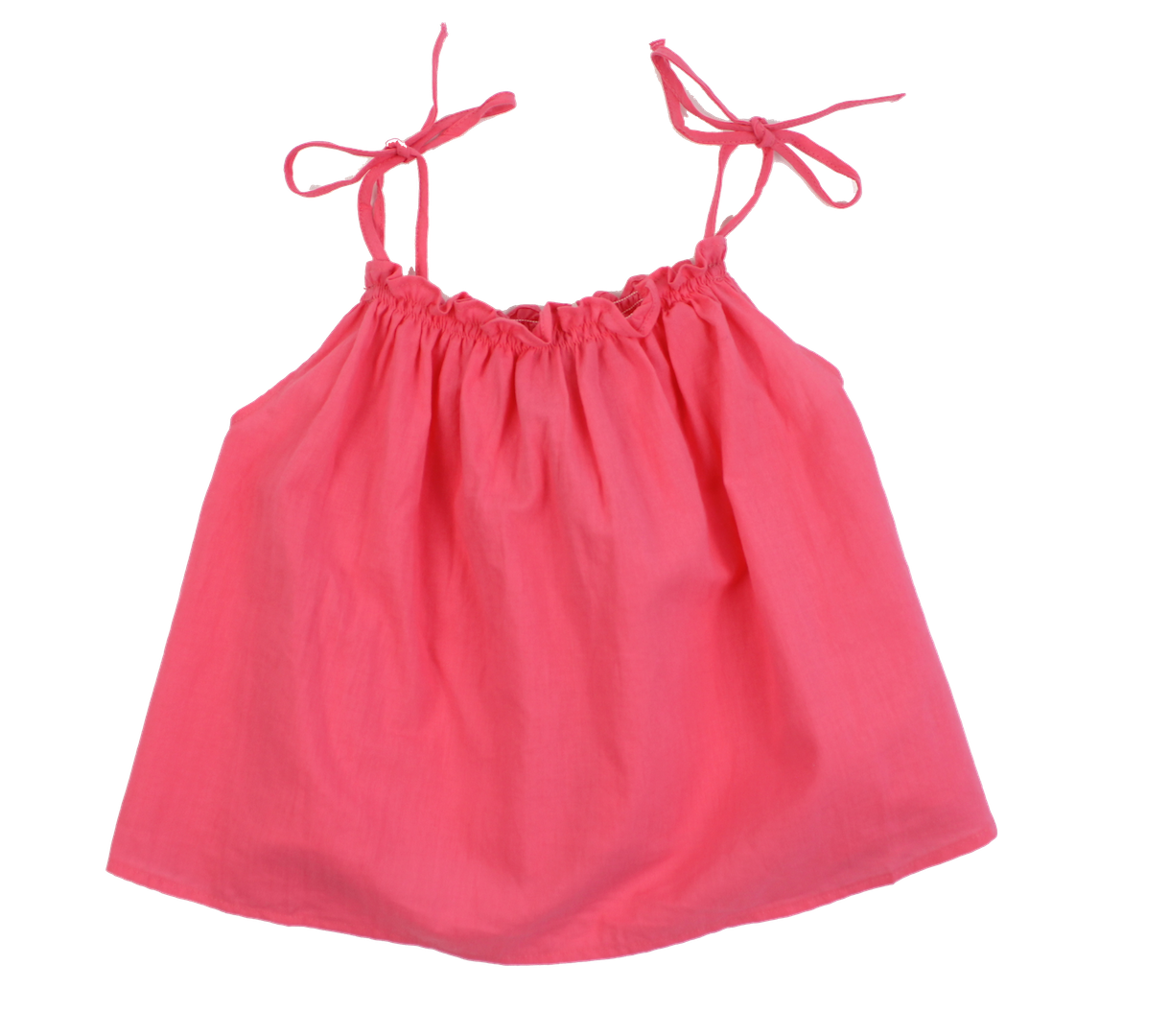 Loose fitting camisole with cute smocking at neckline and shoulder ties.
