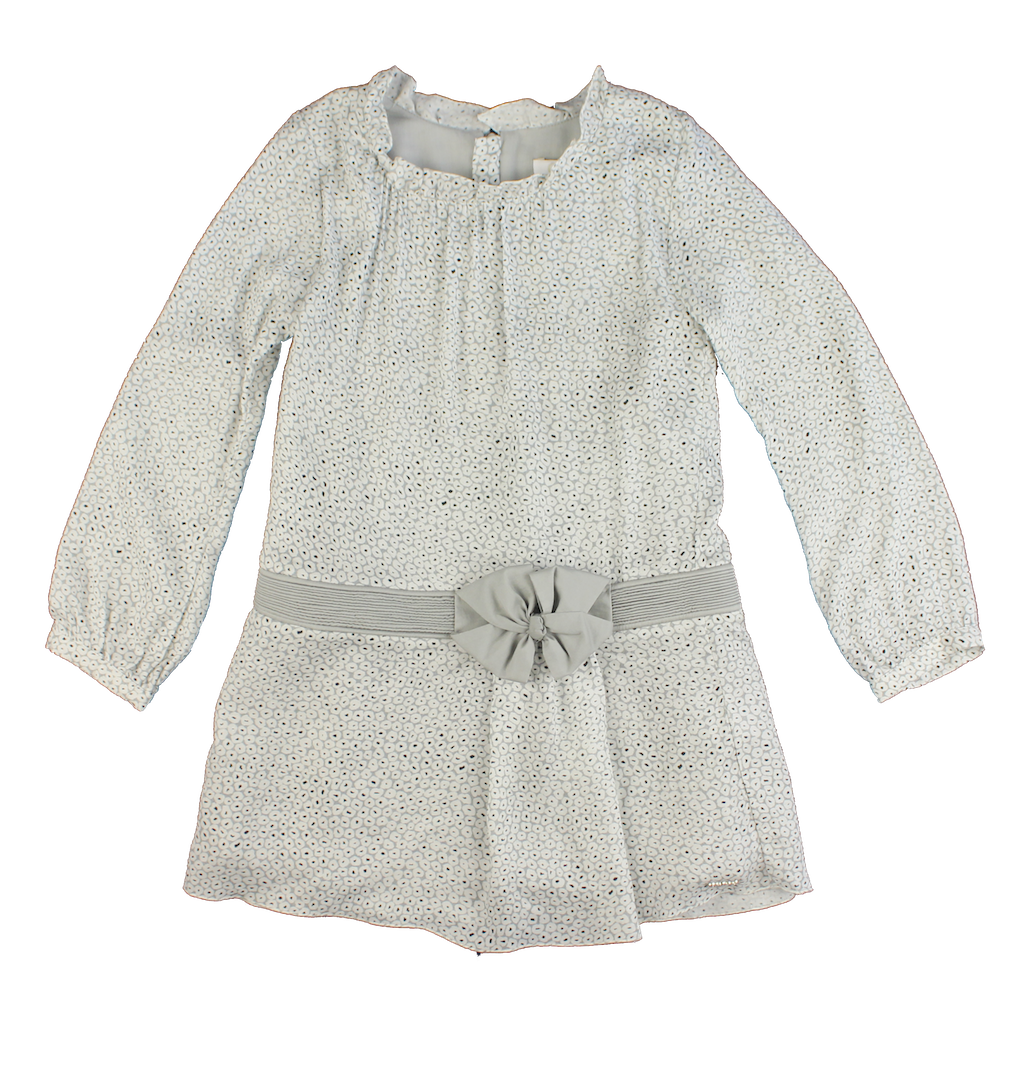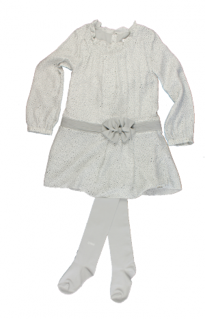 Beautiful long sleeve drop waist dress with a bow at waist. Doesn't include the tights.