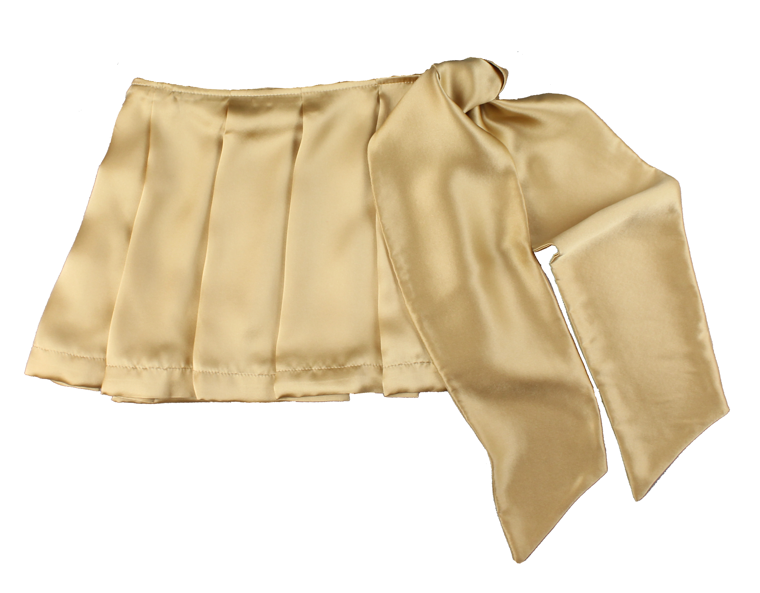 Super-chic pleated skirt with a self-tie bow at waist.