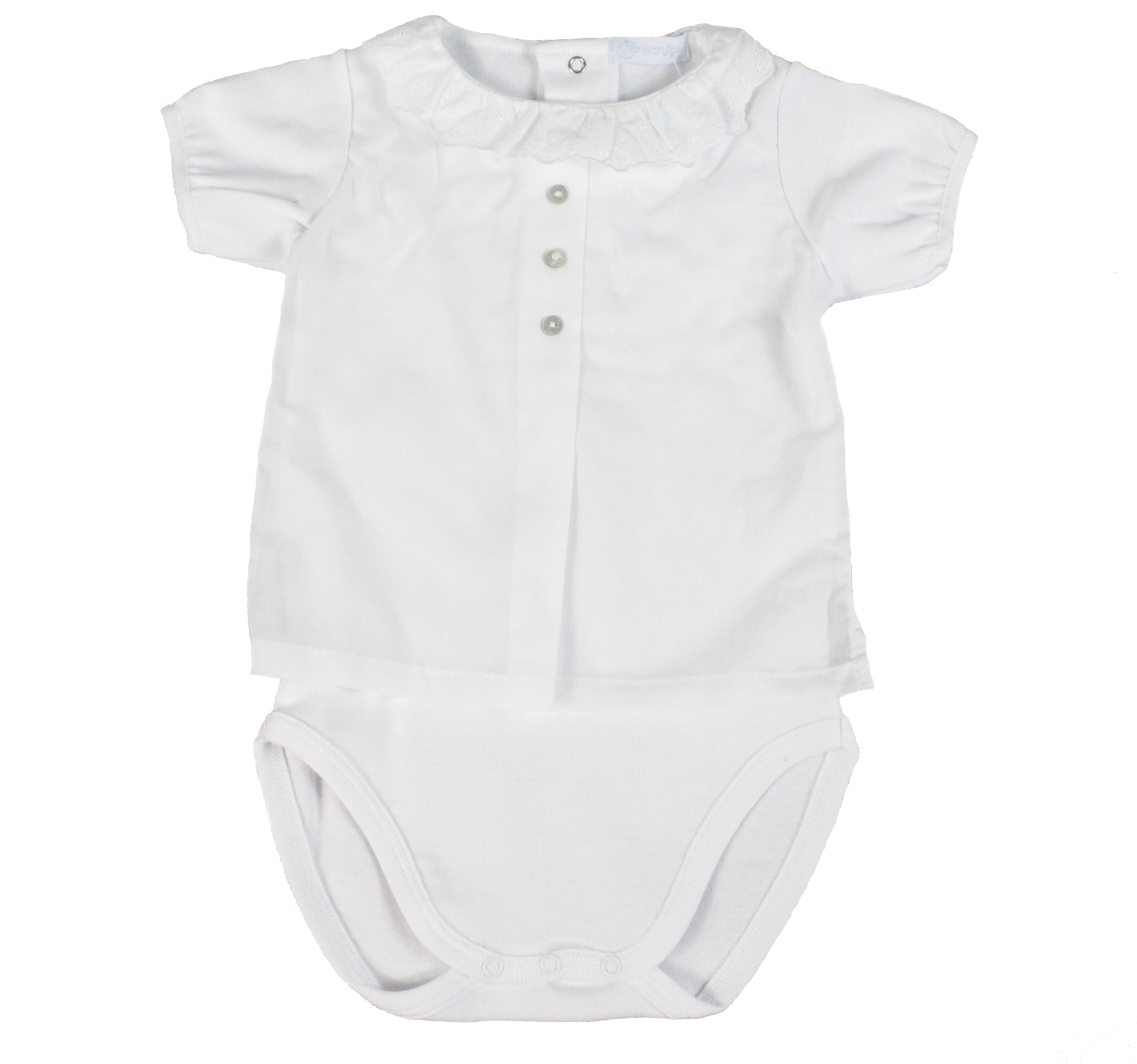 Delicate blouse with broderie anglaise collar and shell buttons. Includes body.