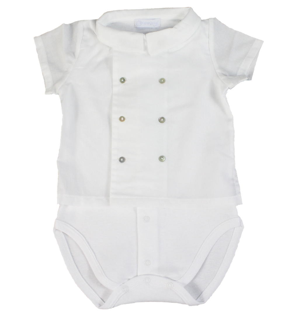 Painters smock shirt with delicate shell buttons closure. Includes body.