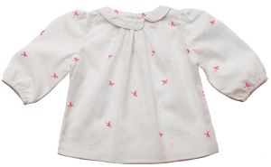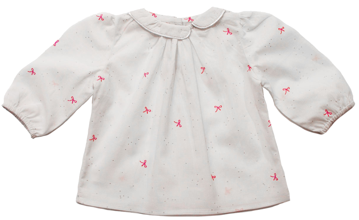 Red tiny French bow prints blouse with silver edge Peter Pan collar, button placket at the back.