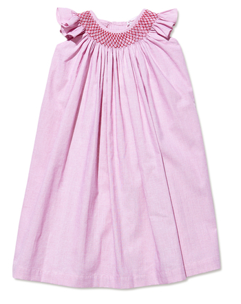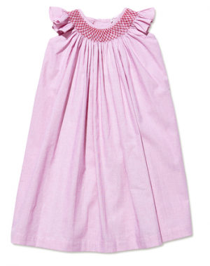 The classic baby dress with smocked neckline, flutter sleeve. Back buttons closures.