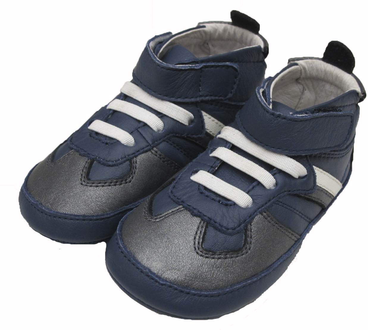 Combo leather soft soles hi top lace up tennis shoes with ankle velcro strap closure.