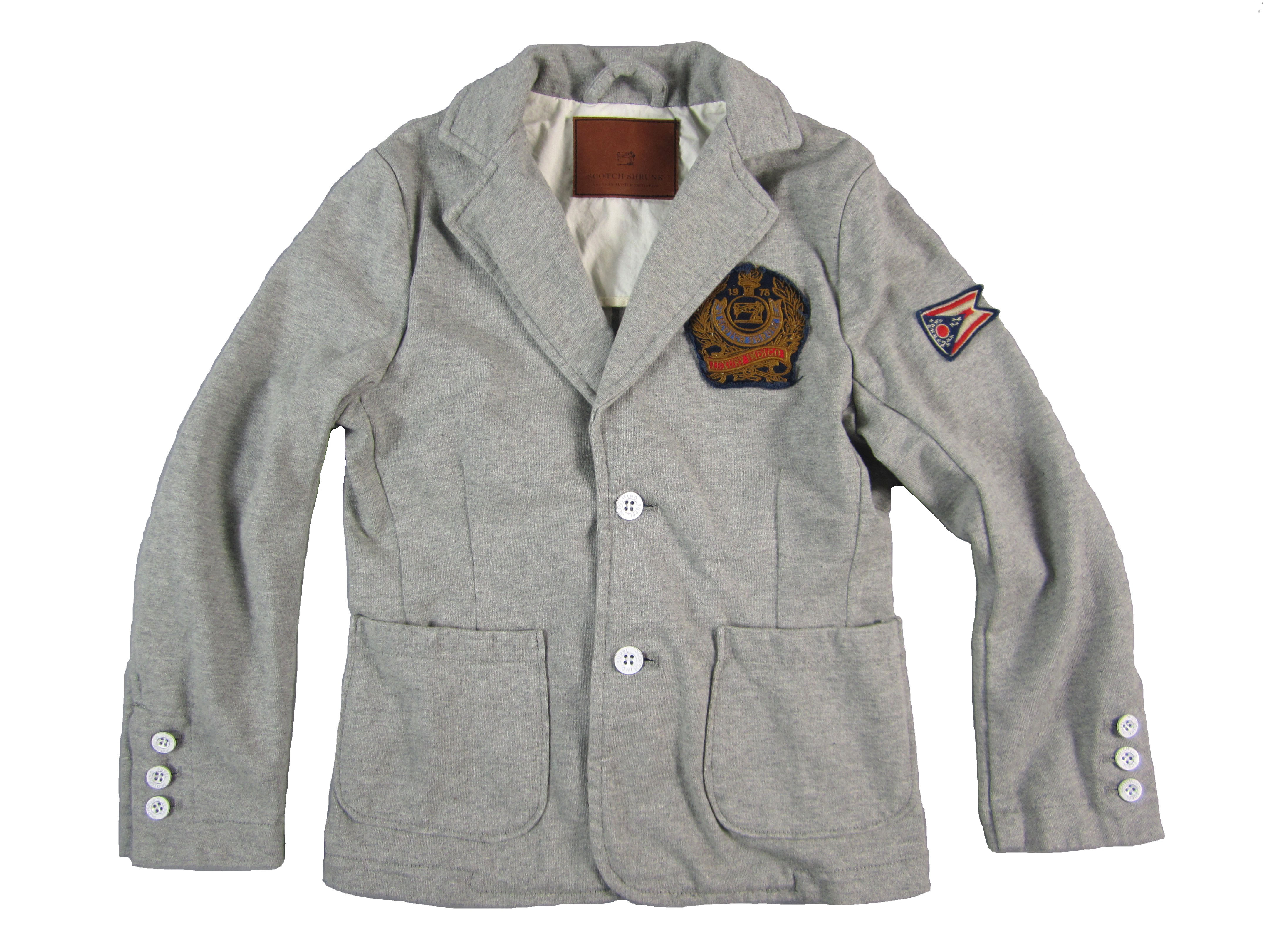 Jersey quality jacket with multi cool patches and contrast bottoms.